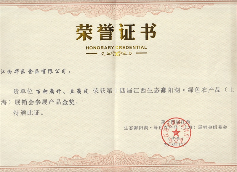豆制品委員會會員證書